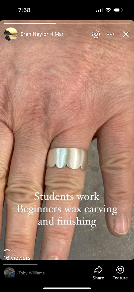 For the first class, everyone will be encouraged to make the same style ring- though that varies wildly. This is to make sure you all pick up the same skills and finish one piece off.